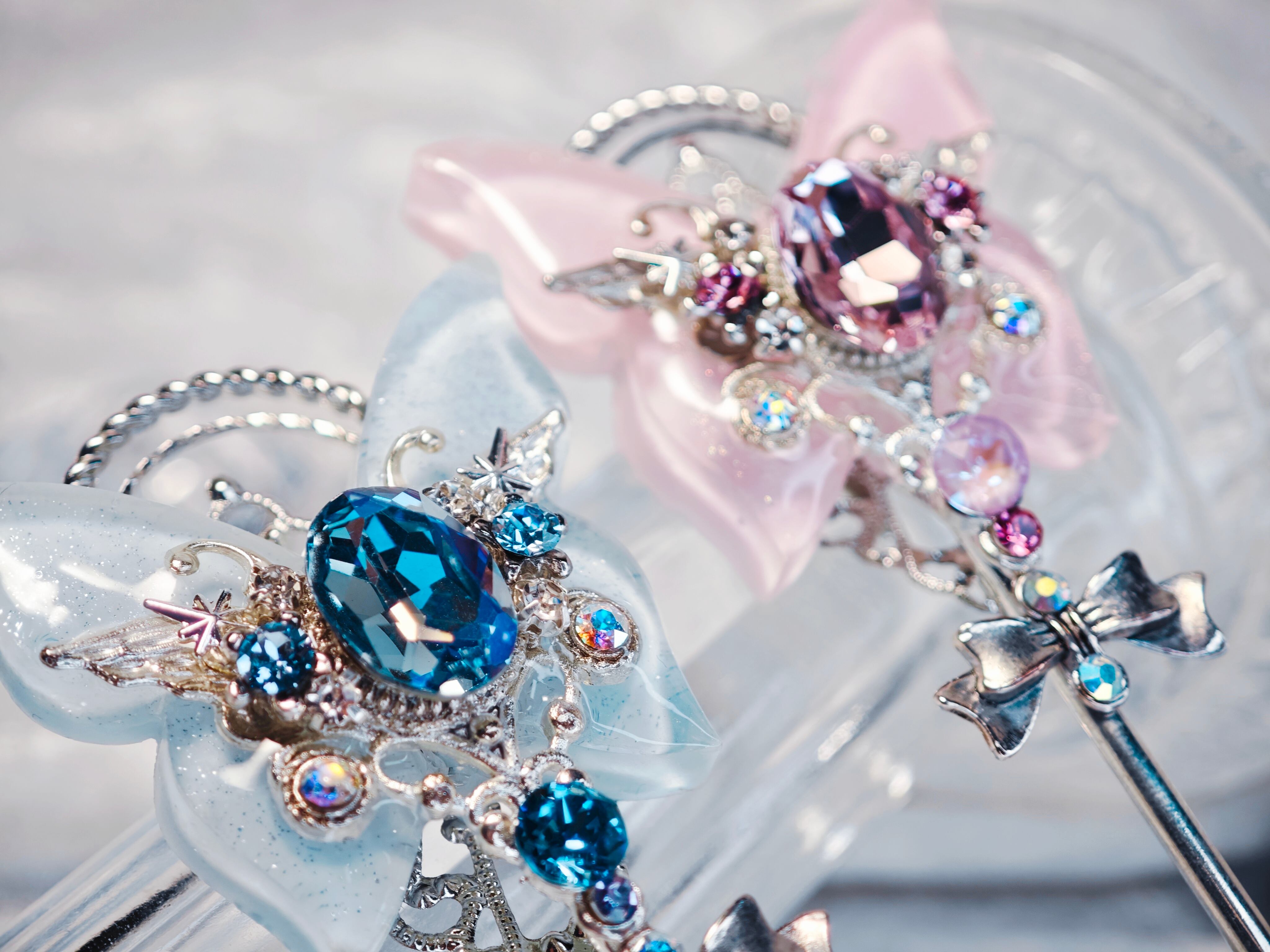 金属パーツは性質上変色、劣化が起こりやすい為、一定期間お楽しみいただくものとお考え下さい。また、レジンも変色しずらいものを使用しておりますが、金属パーツと同様、経年変化は免れない素材ですので、永年ではないことをご留意下さいませ。