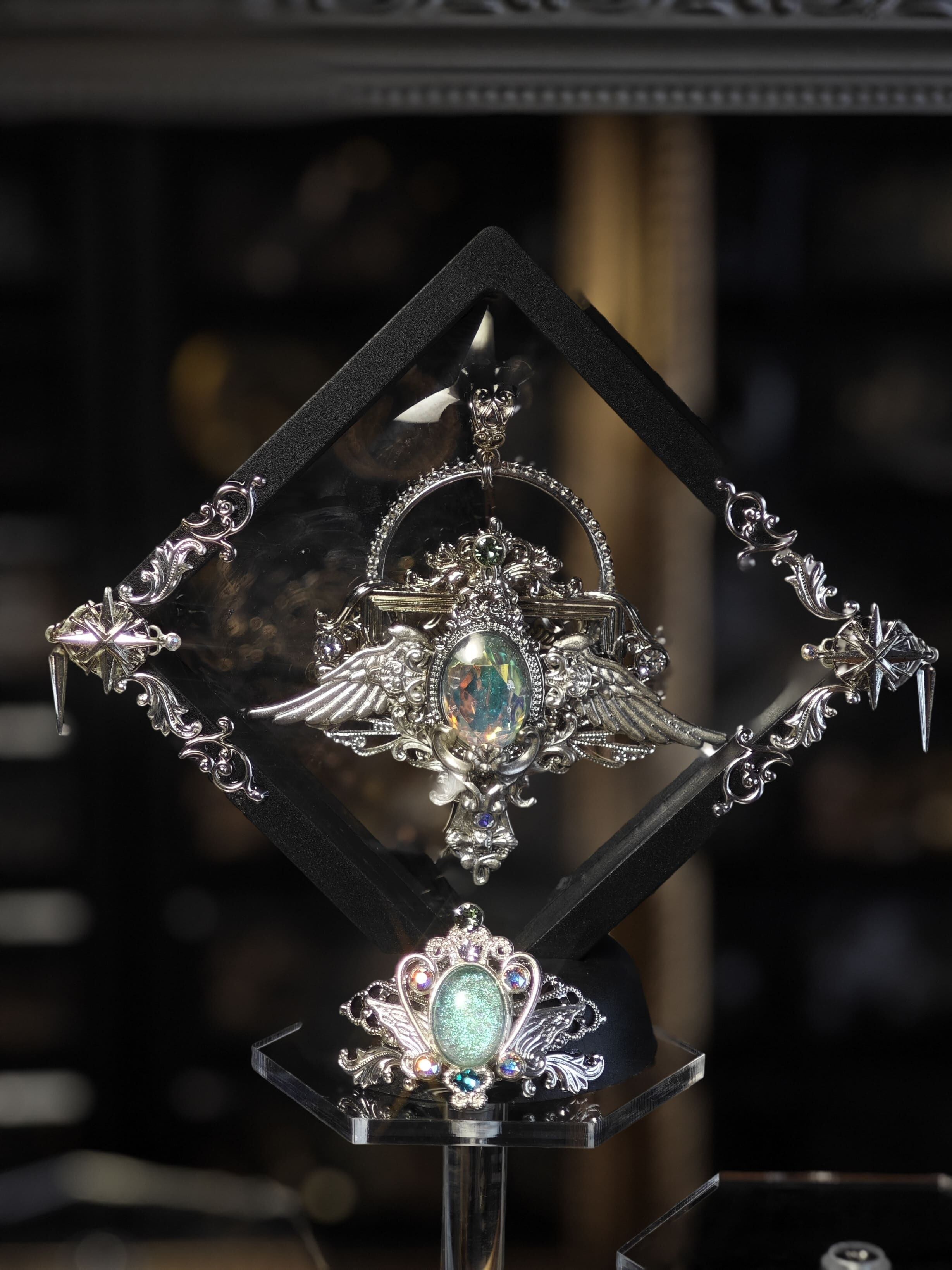 今回はペンダントトップを飾れる飾り枠をオマケとしてお付けします。ネックレスチェーンを付属しますので、特別な日のお供として、お部屋でオブジェとして楽しんでいただくことも可能です。(試作品ですので、その点何卒ご容赦、ご了承くださいませ)