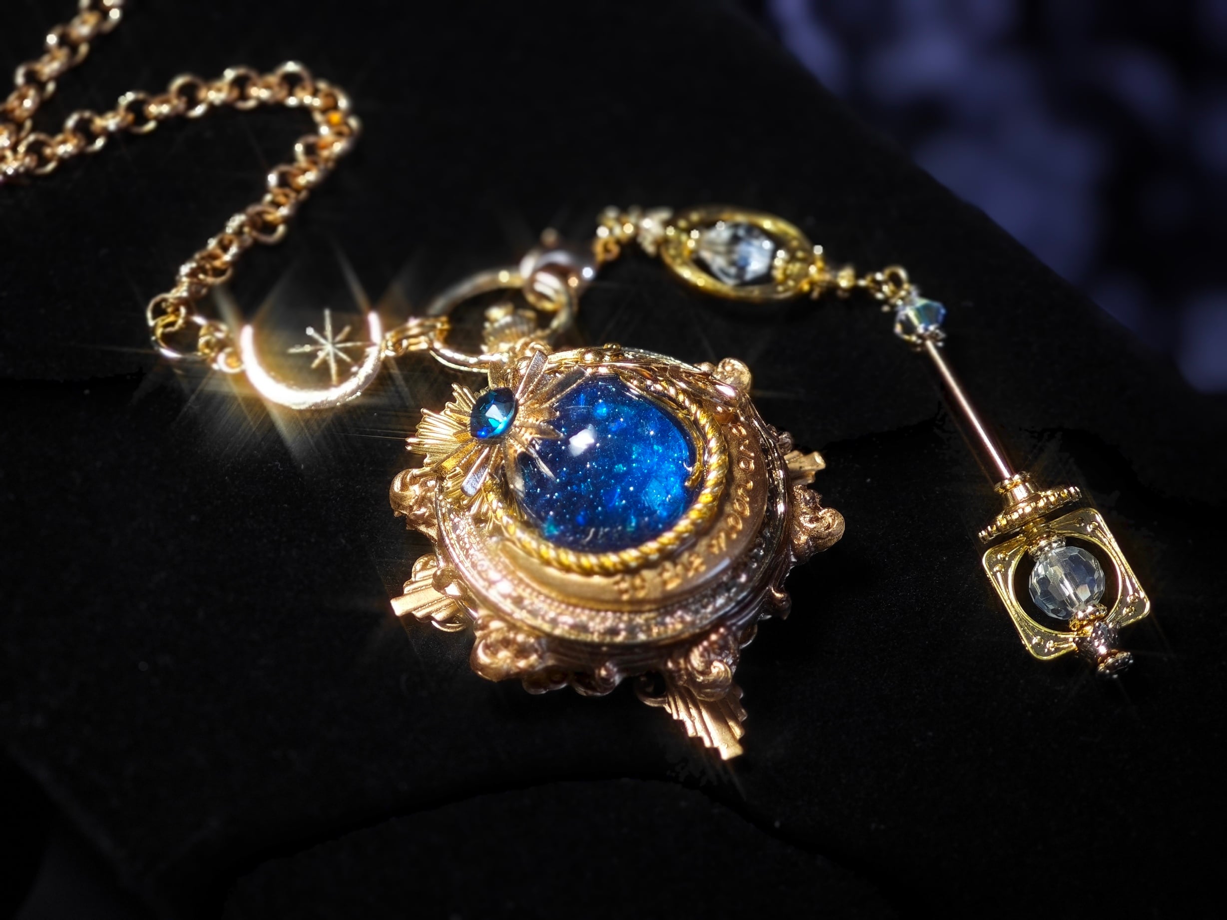 こちらの作品は一部パーツを塗装しております。裏面に関してはしっかりとレジンコーティングを施しておりますが、そのほかの場所はネイルリムーバーなどを塗布してしまうと、塗装が剥がれる可能性がございますのでご注意ください。