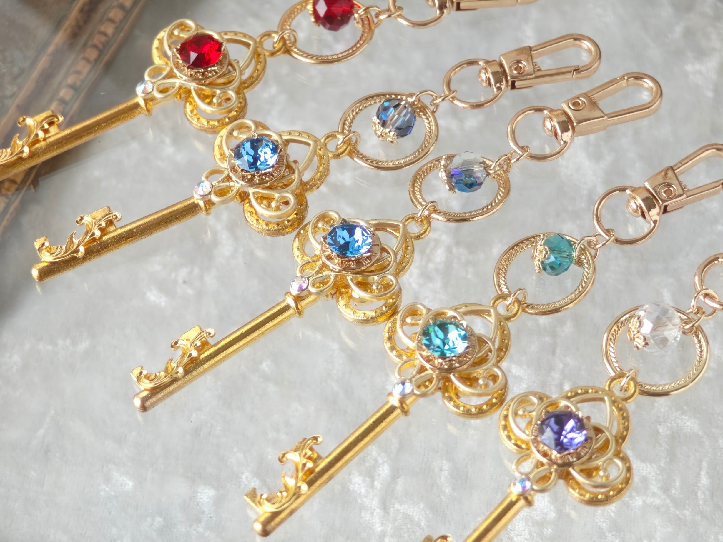 身につけられない仕様に変更してしまったお詫びのしるし、と言っては失礼なのですが、今回限りで同じカラーのミニ鍵チャームをプレゼントとしてお付けします。ミニ鍵はファスナーやバッグに付けてお楽しみください。