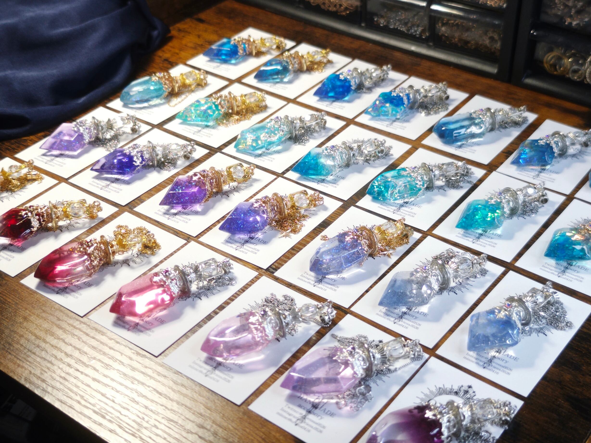 身につけていただくことを前提にした作品ですが、大ぶりのレジン作品なのでお部屋のインテリアとしてもオススメです。