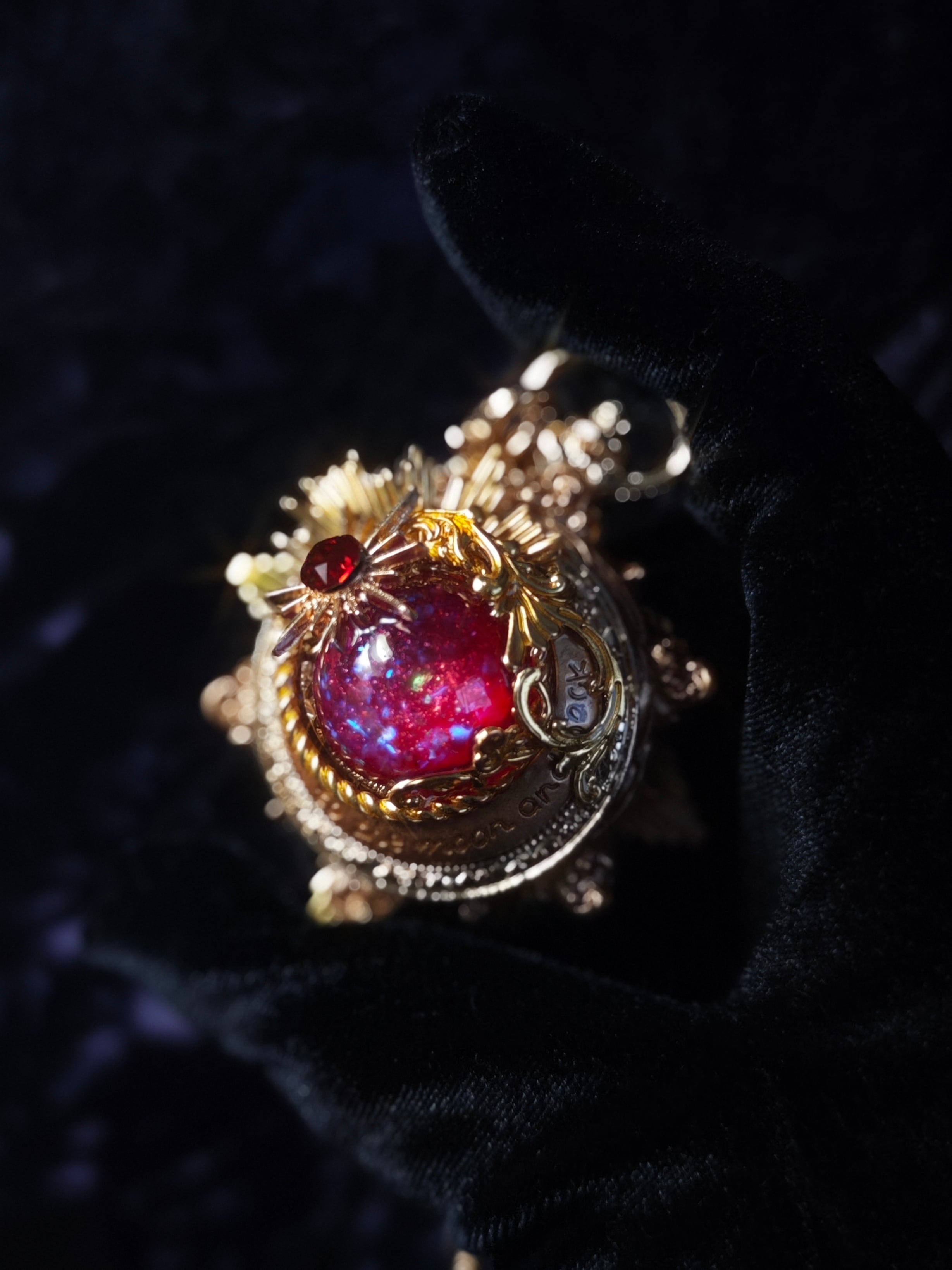 こちらの作品は一部パーツを塗装しております。裏面に関してはしっかりとレジンコーティングを施しておりますが、そのほかの場所はネイルリムーバーなどを塗布してしまうと、塗装が剥がれる可能性がございますのでご注意ください。